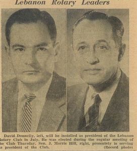 Lebanon Rotarian Dr. Frank Heagerty (Pictured Above) served as Rotary District Governor of the 195th District in 1955 and 1956. Several traditions evolved in the 40's and 50's. For example, it is a tradition that all Rotarians greet each other on a first name basis, which includes visiting Rotarians; thus the reason older members say "Hi Jim" instead of clapping during introductions of visiting Rotarians. According to David Donnelly, in the 50's the older members made it quite a challenge to new younger members to meet this tradition.